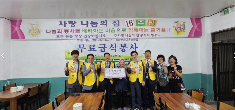 이날 회원동 무료급식소 나눔의집(원장. 곽금둘)을 방문 쌀 35포 (100만원 상당)을 전달하였다.