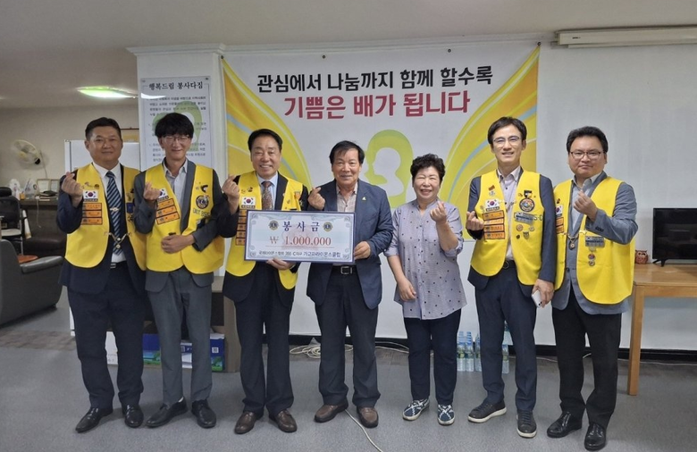 [세계타임즈]최성룡기자 = 국제라이온스협회 355-C지구 가고파라이온스클럽 회장 신철오와 회장단은 9월 5일(목) 오전 10시 추석 명절을 앞두고 마산교당 정법사 보현의집 무료 급식소와 행복드림후원회 경남중부지회, 내서종합사회복지관, 고성애육원,로뎀의집, 회원2동 사랑 나눔의집과 회원1동 행정복지센터를 차례로 방문 어려운 이웃에게 써달라면서 각 시설 단체에 100 만원씩 700만원을 전달했다.