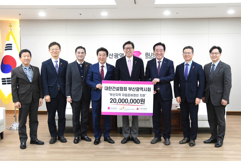 이번 성금 전달식은 대한건설협회 부산시회가 ‘부산광역시 보호아동 자립지원센터’ 사업지원을 통해 보호종료 후 5년 이내의 자립준비 청년들을 지원하기 위해 마련됐다.