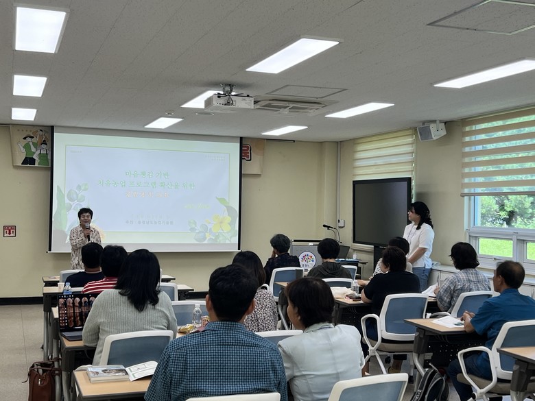 정신건강 전문요원과 돌봄 서비스 제공자 등 정신소진 위험군 대상 치유농업 프로그램 확산을 목적으로 마련한 이번 교육에는 치유농업사와 치유농업시설 운영자 과정 수료자 20명이 참여했다.