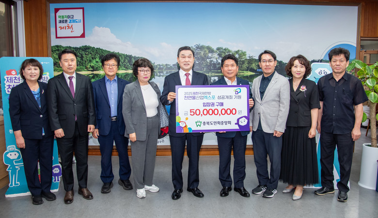 충북도민회중앙회는 전국의 충북 출향 인사 60만 명 이상이 참여하는 향우단체로, 이번 입장권 구매는 고향 충북과 제천의 국제행사 성공을 응원하고 범도민적 참여 분위기를 확산하기 위한 뜻깊은 실천이다.
