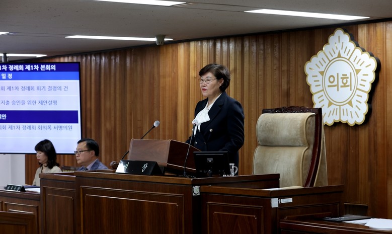 신정숙 의장은 개회사를 통해 "이번 제1차 정례회는 행정사무감사와 결산검사를 중심으로 진행되는 만큼 우리 의회 본연의 역할이 그 어느 때보다도 중요한 회기이다"라며 “의회는 행정의 감시자로서 이번 회기를 통해 단순히 과거를 되짚는 것에 그치지 않고 지역의 변화와 혁신을 이끄는 미래의 이정표를 만들어 가겠다”라고 전했다.