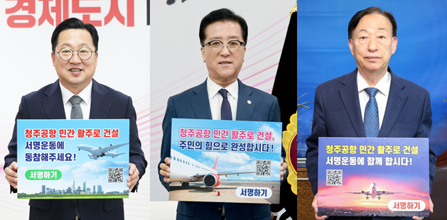 [충북 세계타임즈=이현진 기자] 청주국제공항 민간전용 활주로 건설을 촉구하는 100만 서명운동이 충청권 전역으로 확산 중인 가운데, 대전광역시의 주요 기관장들이 나란히 캠페인에 참여했다.