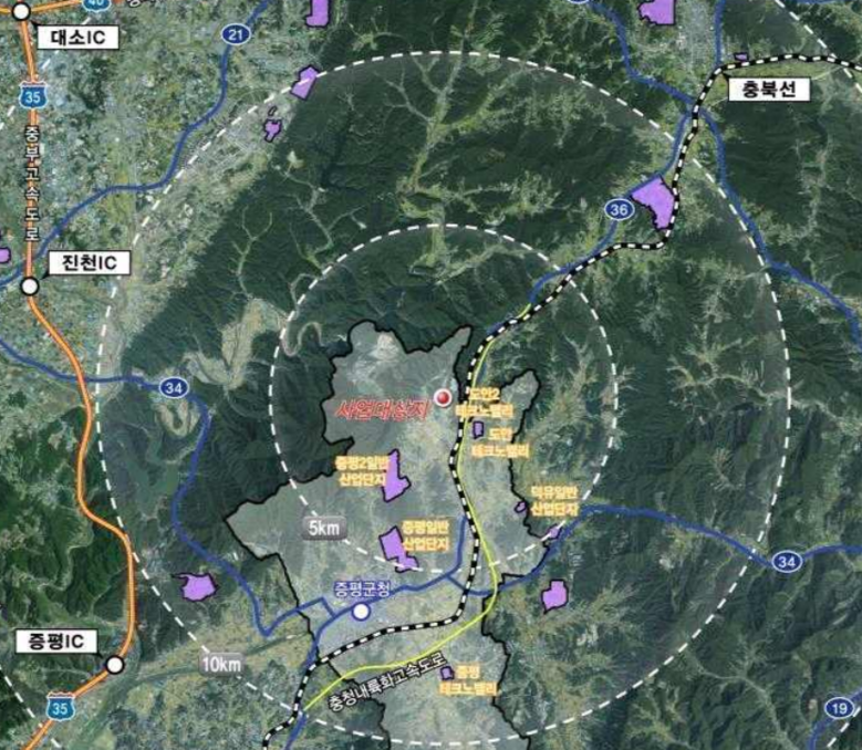 해당 산업단지는 중부고속도로, 충청내륙고속화도로, 지방도 508호선과 연접한 우수한 교통 인프라를 갖추고 있고, 증평1‧2산업단지와 인접해 기존 산단과 연계한 산업 시너지 효과가 클 것으로 예상된다.