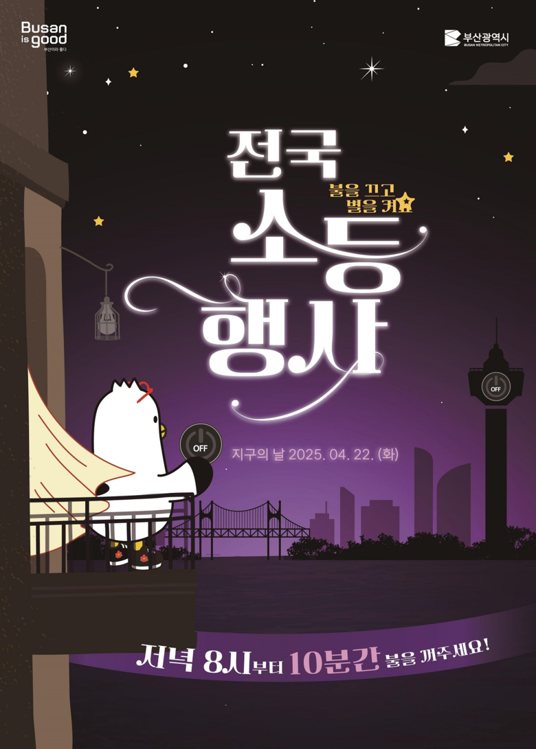 또한, 시는 내일(22일) 저녁 8시부터 10분간, '지구의 날 기념 불 끄기 행사'를 진행한다. ▲부산시청 ▲경찰청 등 관공서는 물론 ▲부산타워 ▲광안대교 ▲부산항대교 ▲누리마루 ▲예술의 전당 ▲부산국제금융센터(BIFC) 등의 시의 주요 랜드마크도 이 시간 동안 일제히 소등될 예정이다.