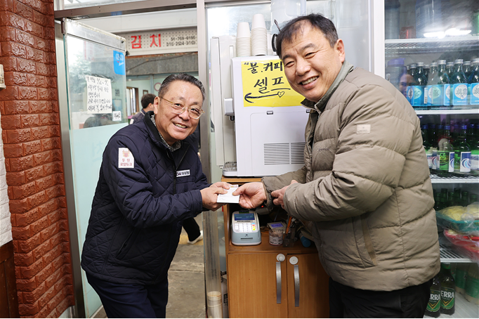 장호익 부회장은 “대내외 경제 환경으로 소비심리가 많이 위축돼 소상공인과 전통시장의 어려운 경영환경에 조금이나마 보탬이 되고자 이번 캠페인 동참하게 됐다”라며, “이번 캠페인이 소비 촉진을 활성화하고 지역경제에 보탬이 되길 바란다”라고 전했다.