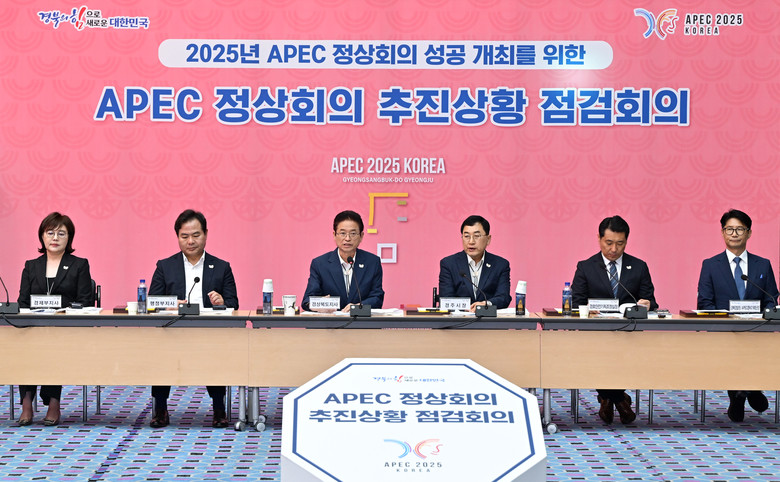 경상북도는 9월 17일 경주 APEC 현장에서 이철우 도지사, 주낙영 경주시장, 대통령실 경호안전통제단 관계자 등이 참석한 가운데 ‘APEC 정상회의 추진상황 점검회의 및 현장 도지사실 현판식’을 개최하였다.
