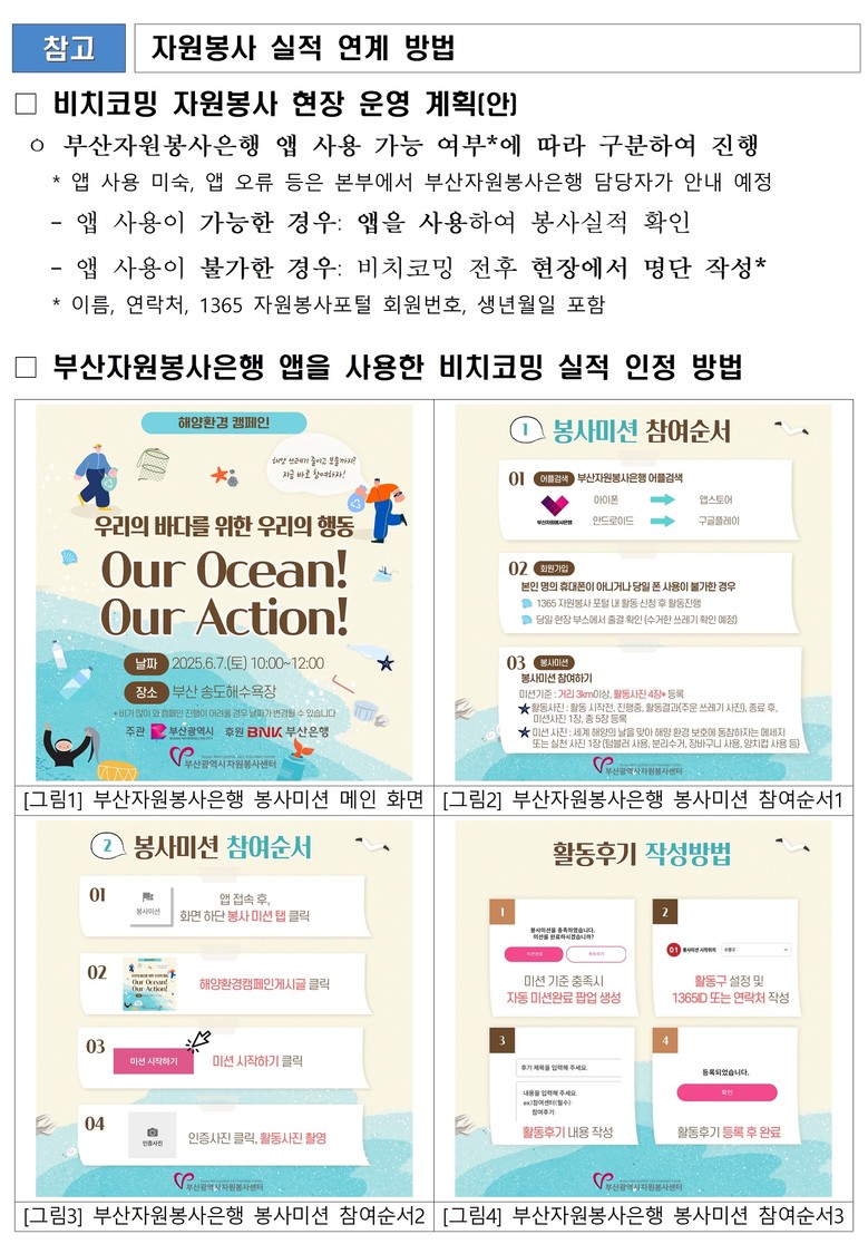 해양 정화 활동(비치코밍)은 자원봉사 실적 인정이 가능하며, (사)생태문화교육허브봄 박성배 대표의 안내로 안전하고 전문적으로 이루어질 예정이다. 시민들은 이번 활동을 통해 환경보호 실천을 다짐하고, 바다를 통한 힐링과 성찰의 시간을 경험할 수 있을 것으로 기대된다.