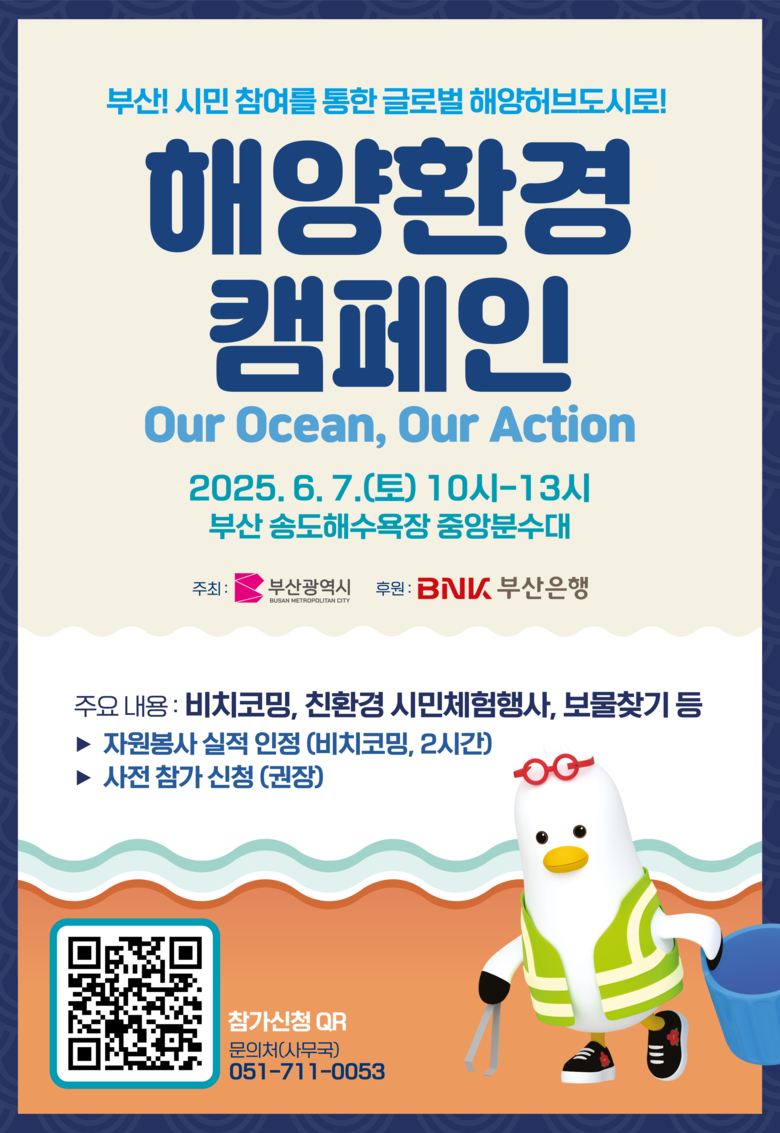 심성태 시 해양농수산국장은 “이번 해양환경 캠페인은 지역은행이 함께하며 시민이 주도하는 실천 중심의 행사로, 해양 보호에 대한 인식을 제고하고, 지속 가능한 해양 보호 문화를 조성하는 계기가 될 것”이라며, “시민 여러분의 많은 관심과 참여를 부탁드린다”라고 전했다.