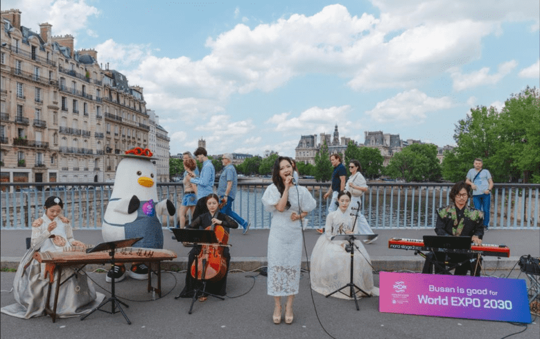 이번 버스킹 공연은 제172차 국제박람회기구 총회를 계기로 프랑스 파리 현지 주요 랜드마크인 트로카데로 광장과 센느강 브릿지에서 2030부산세계박람회 유치를 홍보하기 위해 마련됐다.