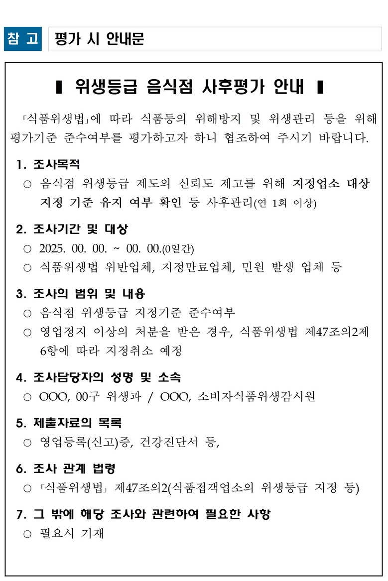 대구시는 등급 지정 이후에도 위생 상태가 지속적으로 유지되는지 확인하기 위해 연 1회 이상 사후관리를 실시하고, 필요시 위생 지도를 통해 개선을 유도하고 있다.