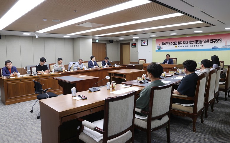 연구모임은 신영호 의원(서천2·국민의힘)이 대표를, 충남수산자원연구소 조병희 귀어학교팀장이 간사를 맡았으며 김민수 의원(비례·더불어민주당), 유재영 수산자원과장, 김남희(당진)‧김덕주(서산)‧김태훈(태안)‧최태석(홍성)‧박세인(보령)‧조종원(서천) 청년수산인과 신경식 씨푸드월드 대표, 박현규 서산 중왕어촌계장 등 총 12명으로 구성됐다.
