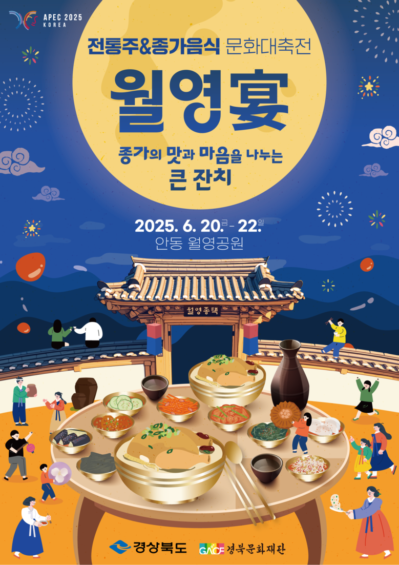 - 종가 음식 쿠킹클래스, 술술토크쇼, 취중 진담가요제 즐길거리 가득 - [경북 세계타임즈=한윤석 기자] 경상북도는 경북의 전통주와 종가음식 문화의 숨겨진 매력을 홍보하고 관광 자원화를 위해 20일부터 22일까지 3일간 안동 월영공원 일원에서 ‘2025 경북 전통주&종가음식 문화대축전’을 개최한다.
