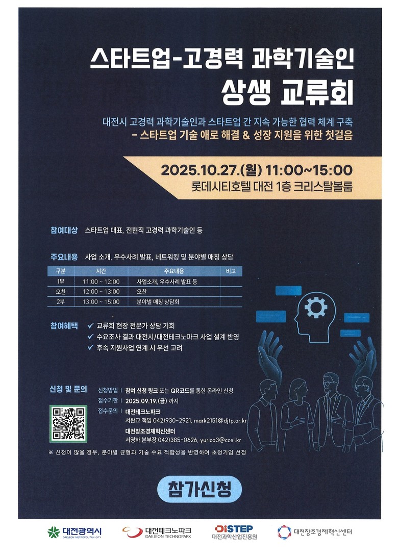 이번 행사는 연구실과 현장에서 수십 년간 전문성을 쌓아온 과학기술인들이 스타트업의 ‘현장 해결사’로 나서는 자리다. 고경력 과학기술인의 경험과 역량을 지역 창업기업과 연결함으로써, 기업들이 겪는 기술적 난제를 실질적으로 풀어갈 수 있도록 지원한다.