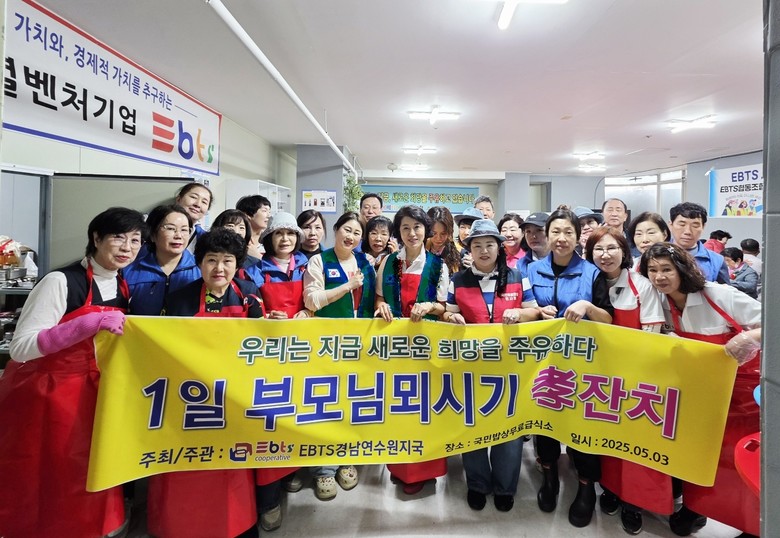 [세계타임즈]최성룡기자 = EBTS협동조합 경남연수원 원장 이수진은 5월 3일 마산m호텔 2층에서 "1일 부모님 모시기 효도잔치 및 200명에게 무료급식 봉사"를 성황리에 개최했다.