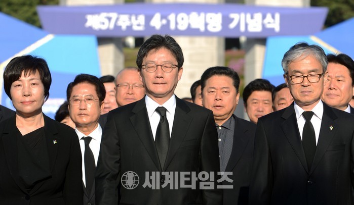 유승민 바른정당 대선후보가 19일 오전 서울 강북구 국립 4.19 민주묘지를 찾아 참배한 뒤 퇴장하고 있다. 2017.04.19.