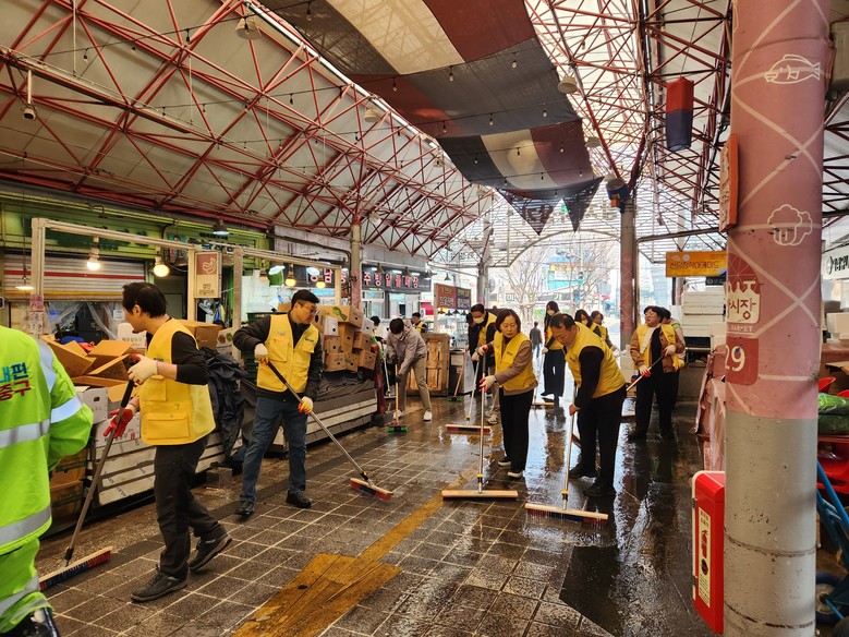 한편, 구는 쾌적한 시장 환경을 조성하기 위해 지난 26일(목) 오전 신중앙시장과 황학시장 일대에서 올해 첫 ‘신중앙시장 클린데이’를 진행했다. 지난해 4월 시작해 8회째인 이날 행사에는 상인과 주민 30여 명이 참여해 적치물을 정비하고 물청소와 EM용액 살포 작업을 벌였다.