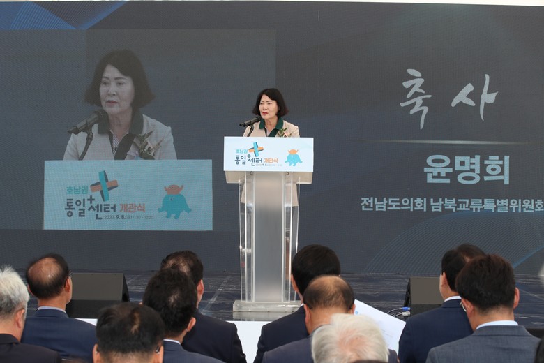 [전남 세계타임즈=우덕현 기자] 전라남도의회 남북교류협력지원특별위원회 윤명희 위원장(더불어민주당, 장흥2)은 9월 8일 목포시에 건립된 호남권통일플러스센터 개관식에 참석했다.