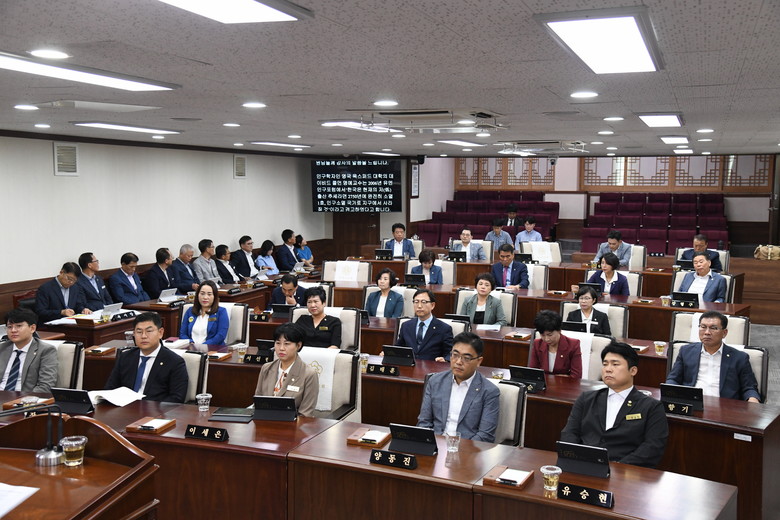정병회 의장은 개회사를 통해 “장기간 경기침체로 인해 어려움을 겪고 있는 소상공인과 서민경제를 살리기 위하여 의회와 집행부가 지혜를 모아야 할 시기임을 강조하고, 더불어 다가오는 추석 명절을 맞아 소외받는 취약계층이 없도록 다시 한번 잘 살펴봐 주길 바란다”고 말했다.