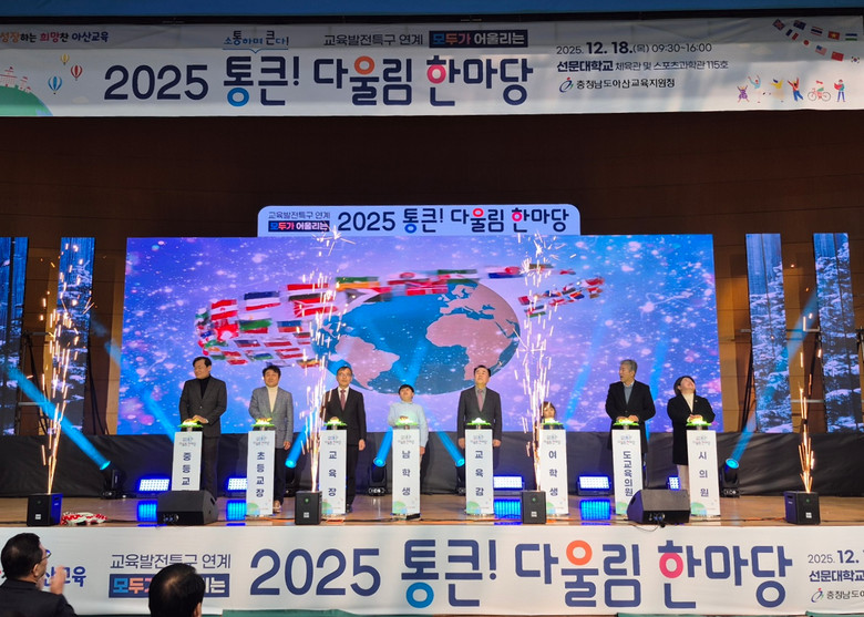 [아산시 세계타임즈=이현진 기자] 아산교육지원청(교육장 신세균)은 12월 18일(목) 선문대학교 아산캠퍼스 체육관에서 학생, 교원, 학부모, 지역 주민 등 교육공동체가 참여한 가운데, ‘2025 교육발전특구 연계 모두가 어울리는 통큰 다울림 한마당’을 성황리에 개최했다.
