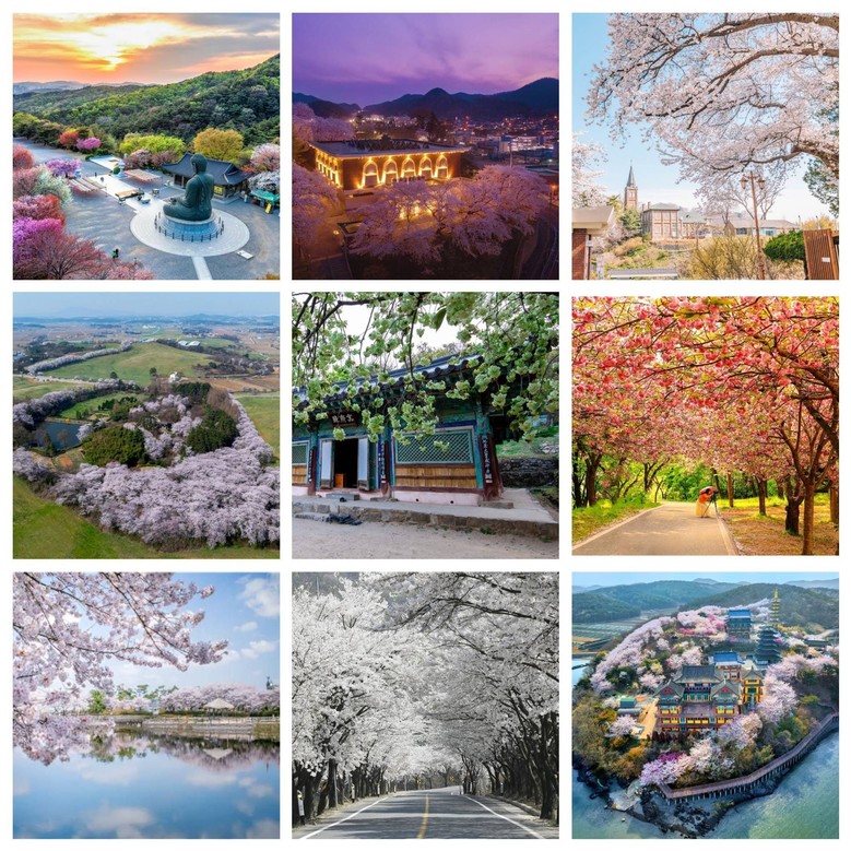 가수 장범준의 노래 ‘꽃송이가’의 배경인 천안 천호지(단대호수), 도심 속 벚꽃 터널이 장관인 원성천은 필수 데이트 코스이자 누리소통망(SNS) 인증 사진 성지이며, 각원사는 청동대불과 어우러진 왕벚꽃부터 수양벚꽃, 겹벚꽃까지 한자리에서 볼 수 있는 특별한 명소다.