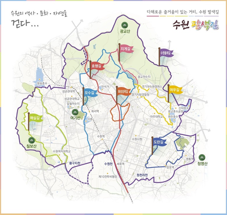 수원시 관계자는 “도시 변화로 단절된 구간을 연결하고 노후화된 안내 시설을 정비하는 데 중점을 뒀다”며 “앞으로도 대중교통과 연계한 보행 환경을 체계적으로 관리해 시민이 안전하게 수원팔색길을 이용할 수 있도록 하겠다”고 말했다.
