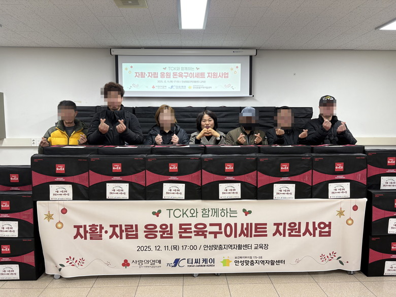 안성맞춤지역자활센터 안선자 센터장은 “어려운 경영 환경 속에서도 지역사회 취약계층을 위해 500만 원을 후원해 주신 ㈜TCK에 깊은 감사를 드린다”며, “이번 후원으로 자활근로사업 참여자들이 2025년 겨울을 더욱 든든하고 따듯하게 보낼 수 있게 되었다”고 전했다.