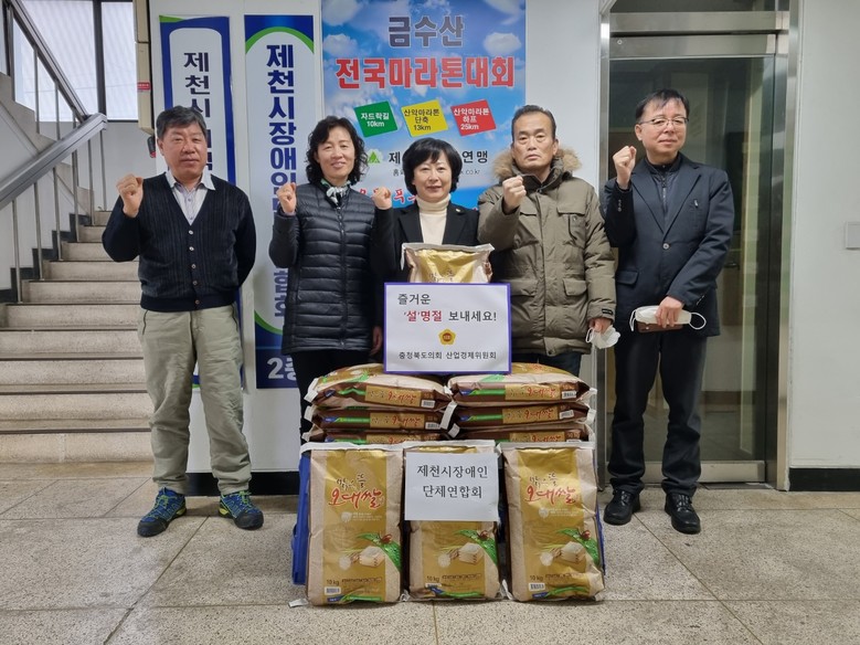 [충북 세계타임즈=이현진 기자] 충북도의회 산업경제위원회(위원장 박경숙)는 설 명절을 앞둔 1월 13일 제천의 충북장애인단체연합회 제천시지부를 방문하여 위문품을 전달하고, 관계자의 애로사항을 청취하며 따뜻한 나눔의 정을 실천했다.