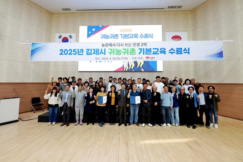 [김제시 세계타임즈=이채봉 기자] 김제시(시장 정성주)는 지난 24일 농업인교육문화지원센터 2층 대강당에서 2025년 귀농·귀촌 기본교육 교육생 39명을 대상으로 수료식을 개최했다고 밝혔다.