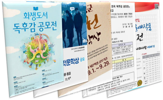 주요 문학 공모전으로는 2017년 화쟁도서 독후감 공모전, 제16회 대산대학문학상, 송수권 시 문학상 및 시낭송대회, 제2회 올해의 책 전국 독후감 공모전, 2017년도 호국보훈문예작품 공모전 등이 진행 중이며 수상자에게는 상금과 부상 등 다양한 혜택이 주어진다.
