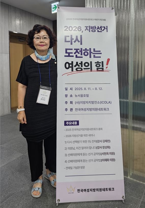[서울 세계타임즈=이장성 기자] 서울특별시의회 왕정순 시의원(더불어민주당, 관악구)은 지난 8월 11일부터 12일까지 이틀간 열린 '2025 전국여성지방의원네트워크 하반기 워크숍'에 참석했다. 워크숍은 '2026 지방선거, 다시 도전하는 여성의 힘!'을 주제로 전국 각지의 여성 지방의원들이 한자리에 모여 선거 전략과 의정활동 노하우를 공유하고, 초당적 여성 연대의 중요성을 재확인하는 자리였다.