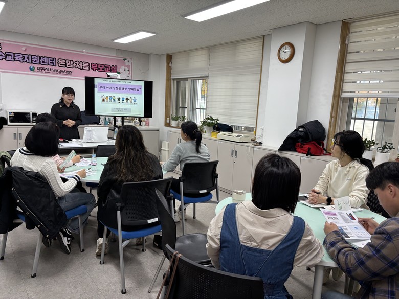 [대구 세계타임즈=한윤석 기자] 대구남부교육지원청(교육장 류호)은 11월 7일(금) 대구죽전초등학교 내 남부특수교육지원센터에서 특수교육대상학생 학부모 11명을 대상으로 ‘하반기 온맘 처음 부모교실’을 운영했다.