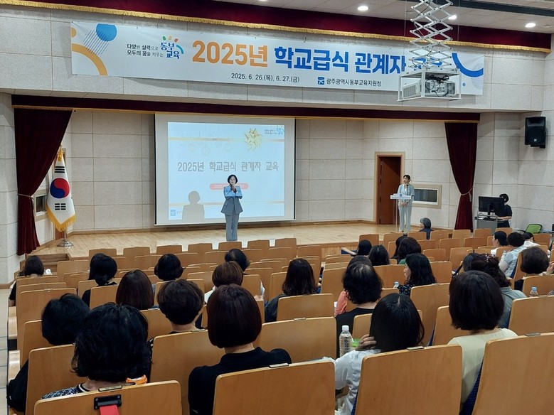 [광주 세계타임즈=손권일 기자] 광주동부교육지원청은 지난 25일부터 3일간 광주광역시교육청교육연수원에서 동부 관내 공·사립 유치원 및 초‧중‧고‧특수학교 관리자, 영양교사, 영양사, 조리사 등 300여 명을 대상으로 ‘2025년 학교급식 관계자 교육’을 운영했다.