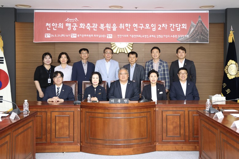 [천안시 세계타임즈=백택기 기자] 천안시의회「천안의 행궁 화축관 복원을 위한 연구모임」이종만(대표의원), 유영진, 류제국, 이상구, 김행금, 노종관, 김강진 의원은 21일 복지문화위원회 회의실에서 2차 간담회를 개최했다.