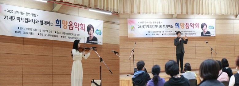 [세계타임즈 백진욱 기자] 지난해 10월 21세기아트컴퍼니 이은이 대표가 희망나래장애인복지관 에서 지역사회장애인 및 주민들을 대상으로 가을맞이 희망음악회를 개최했다.