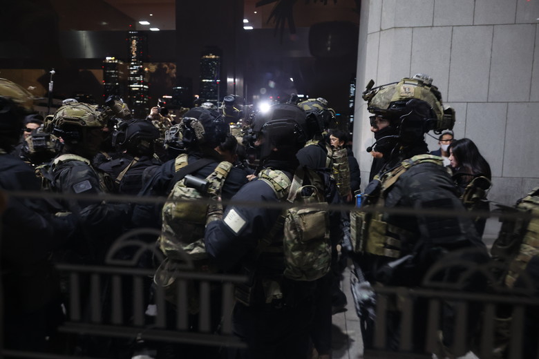 [세계타임즈 = 심귀영 기자] 윤석열 대통령이 비상계엄을 선포한 4일 서울 영등포구 여의도 국회 본관으로 계엄군이 진입 준비를 하고 있다. 2024.12.4