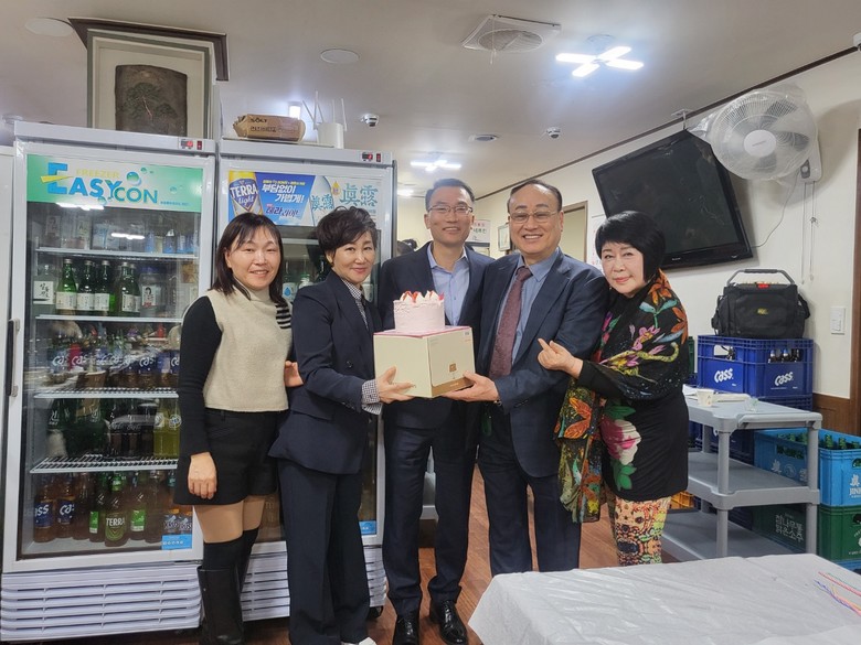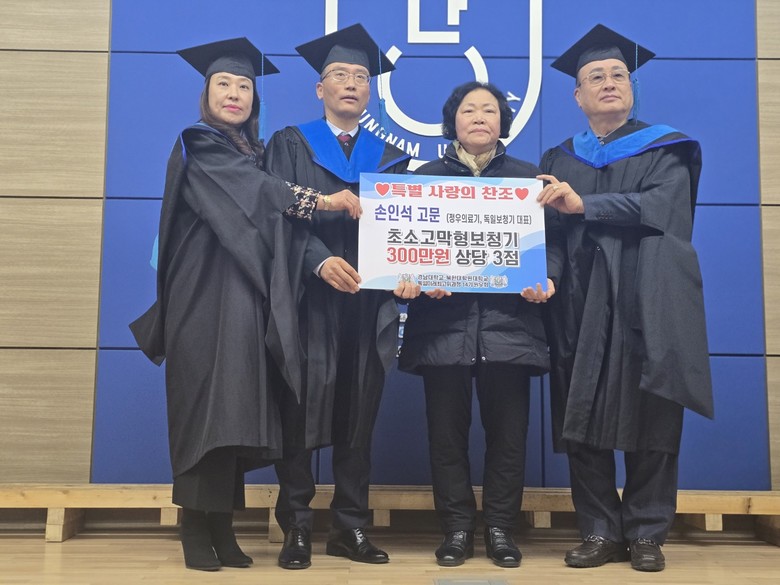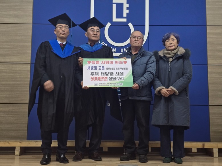 사랑의 선물을 전달한 14기 원우회 한국쏠라뱅크(주) 서경화 고문은 태양광 500만 원 시설 2점 그리고 손인석 고문(청 후 의료기. 독일보청기)은 300만 원 상당 3점은 각각 1,000만 원 상당을 기증했다.
