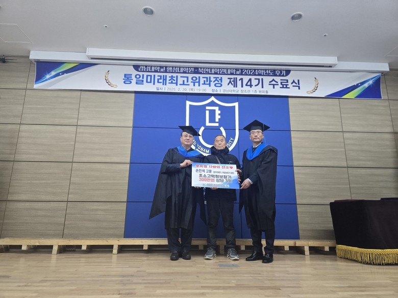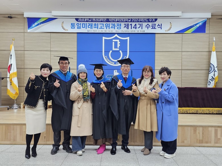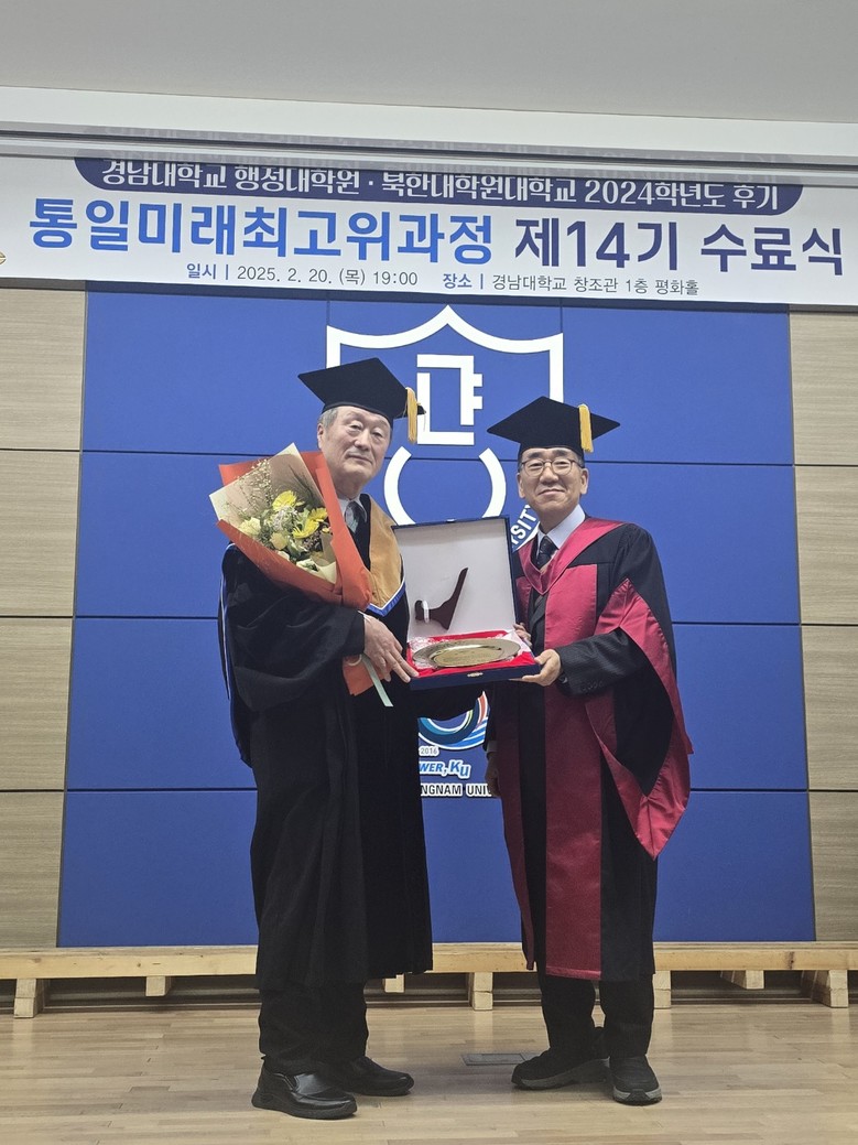 [세계타임즈] 최성룡기자 =경남대학교 북한 · 통일 분야에서 오랜 역사와 탁월한 업적으로 명실상부 최고의 권위를 지닌 연구·교육기관 『경남대학교-북한대학원 대학교』가 공동으로 운영하는 『통일 미래 최고위 과정』제14기 수료식을 2월20일 7시 창조관 1층 평화의 홀에서 가졌다.