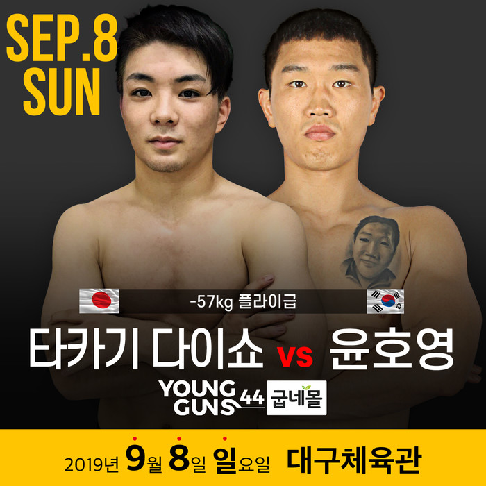 이번 경기에서 윤호영이 상대할 파이터는 타카기 다이쇼다. 일본 단체 워독의 플라이급 초대 챔피언으로 지난 7일 고동혁과 대결해 승리했다. 7전 전승의 파이터로 펀치력과 그라운드 기술 모두 갖춘 강자다.