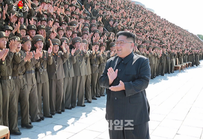 김정은 위원장이 금수산태양궁전에서 열린 제4차 청년동맹초급단체비서열성자대회에 참석해 참가자들과 기념사진을 찍었다고 조선중앙TV가 2일 보도했다. 2017.09.02. (출처=조선중앙TV 캡쳐)