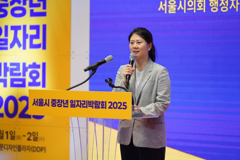 [서울 세계타임즈=이장성 기자] 서울시의회 박수빈 행정자치위원회 부위원장(더불어민주당, 강북4)이 7월 1일(화) 동대문디자인플라자(DDP)에서 열린 「서울시 중장년 일자리박람회 2025」 개막식에 참석해 축사를 전하며, 중장년층이 다시 일어설 수 있도록 제도적 기반을 마련하는 데 시의회도 적극 나서겠다고 밝혔다.