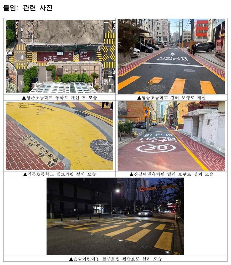 특히 영동초 일대는 학부모 소통 간담회에서 제기된 의견을 적극 반영해 실제 통학로에서 체감할 수 있는 보행 안전 대책을 마련했다는 점에서 의미가 크다.