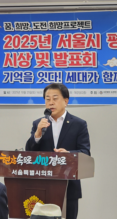 [서울 세계타임즈=이장성 기자] 서울특별시의회 도시안전건설위원회 부위원장으로 활동하고 있는 김용호 시의원(국민의힘, 용산1)은 지난 10월 25일 서울시의회 별관 제2대회의실에서 열린 ‘2025 서울시 평화통일ㆍ안보교육 시상 및 발표회’에 참석하여 시상과 함께 좌장을 맡아 발표를 주관했다.