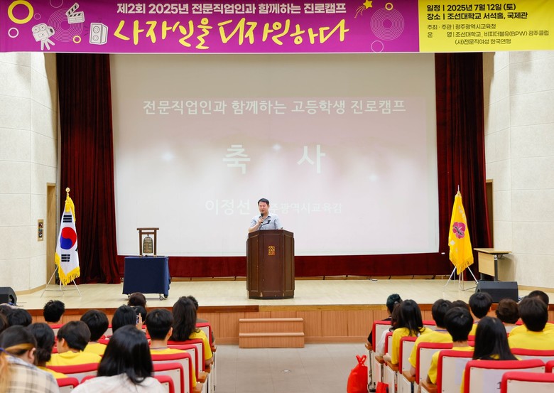 [광주 세계타임즈=손권일 기자] 광주시교육청(교육감 이정선)은 지난 12일 조선대학교 서석홀과 국제관에서 고등학교 1~2학년 학생 180명이 참여한 가운데 ‘2025 전문 직업인과 함께하는 고등학교 진로캠프’를 개최했다.