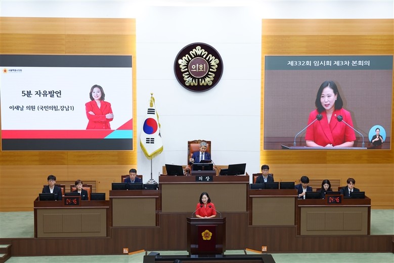 [서울 세계타임즈=이장성 기자] 서울특별시의회 교육위원회 이새날 의원(국민의힘, 강남1)은 지난 8월 29일 제332회 임시회 본회의 5분 자유발언을 통해 신구초등학교 복합시설에서 발생한 주민 피해 문제를 강력히 제기했다.