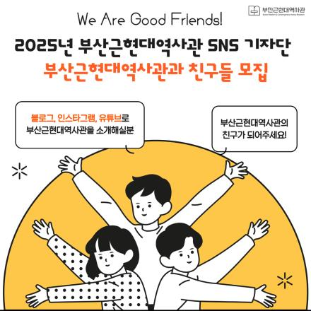 ◈ 지원 희망 시, 역사관 누리집에서 지원신청서 내려받아 전자우편으로 제출하면 돼 [부산 세계타임즈=이용우 기자] 부산근현대역사관(이하 역사관)은 오는 17일부터 22일까지 역사관의 매력을 널리 전파할 사회관계망서비스(SNS) 기자단 '2025년 부산근현대역사관과 친구들'을 모집한다고 밝혔다.