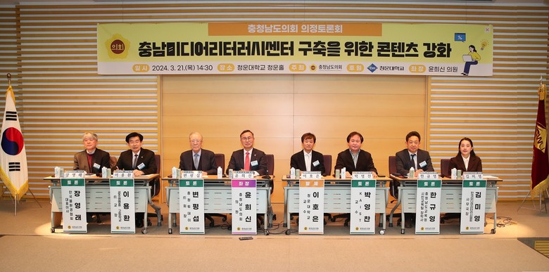 충남도의회는 21일 청운대학교 청운홀에서 ‘충남미디어리터러시센터 구축을 위한 콘텐츠 강화 의정토론회’를 개최했다.