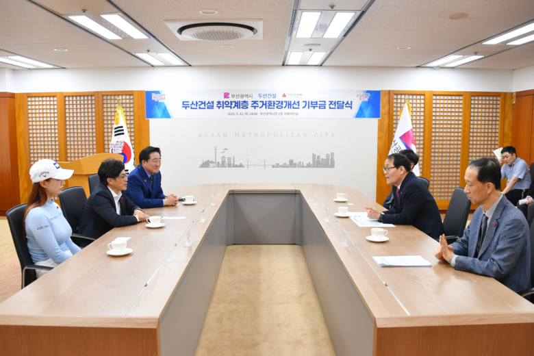 [부산 세계타임즈=이용우 기자] 부산시(시장 박형준)는 어제(22일) 오후 2시 시청 국제의전실에서 두산건설 취약계층 주거환경개선 기부금 전달식을 개최했다고 밝혔다.