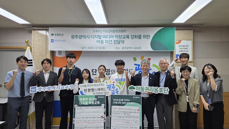 시교육청은 지난 18일 본청 상황실에서 초록우산 광주지역본부로부터 ‘디지털 역량 교육 강화를 위한 아동 의견’을 전달받았다.