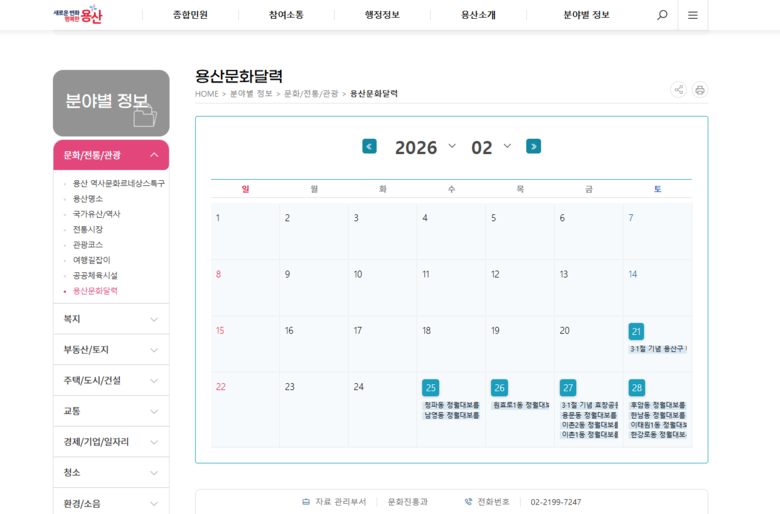 - 용산구청 누리집에서 날짜별 일정 및 상세정보 확인